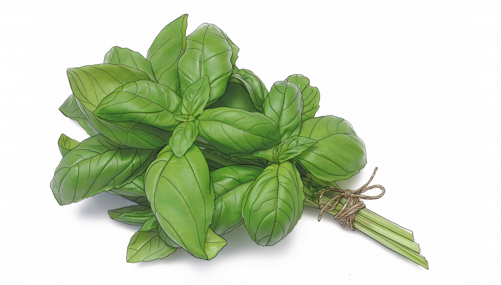 바질 Basil의 이름은 ‘왕’이라는 뜻의 그리스어인 바실레우스(βασιλευς)에서 왔습니다. 동서양에서 두루 중요한 약용 식물로 사용되어온 풀로, 인도에서는 가장 많이 쓰이는 약재 중 하나라고 합니다. 잎이 보드랍고 초록색 잎과 향이 매력적인 바질은 처음에는 연약한 풀처럼 자라지만 시간이 지나면서 목질화되면서 나무처럼 단단해지며, 4~5년 이상 길게 사는 약초입니다.